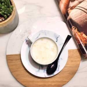 以燉熬出膠的白木耳露做基底,搭配採用嚴選現磨南杏來做為天然的調配